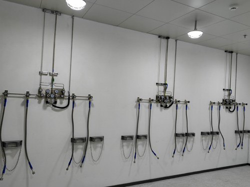 1.氣瓶間內壓為自動調節面板開關與完成實驗室內吊頂的氣路消費終端當中所用SS316LBA管完成拼接,管內表皮光滑度為Ra<0.4umBA級管。